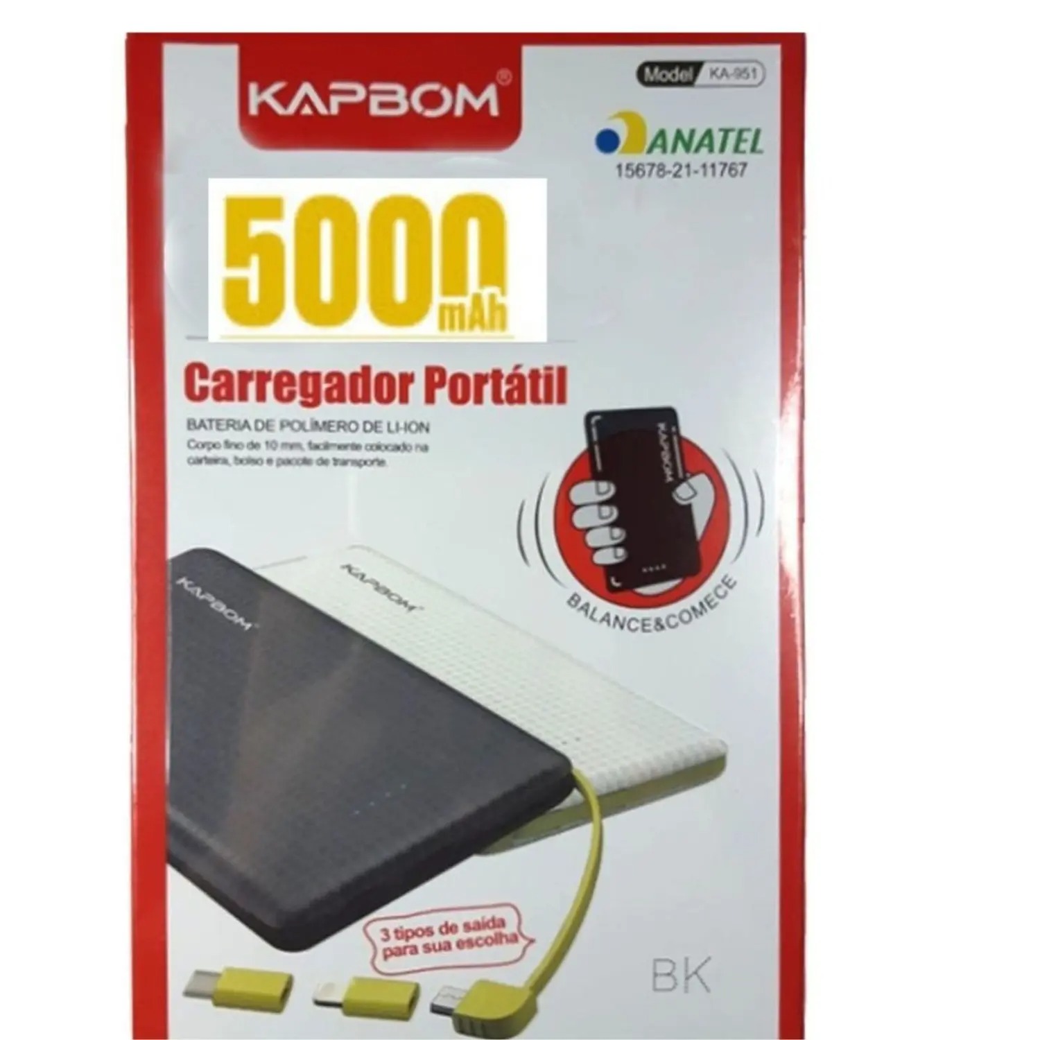Carregador Portátil Power Bank 5000 Mah Ka-952 – Kapbom Energia Sempre à Mão!