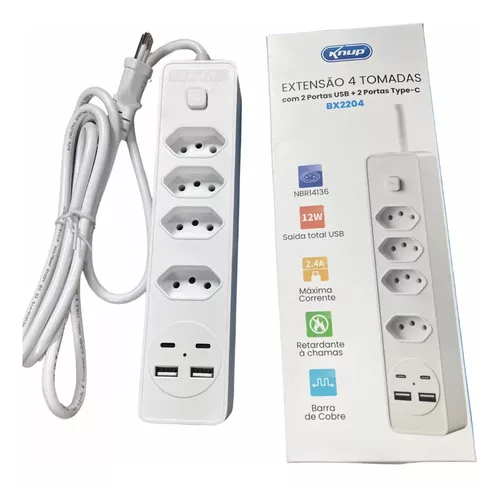 Filtro de Linha com 4 Tomadas + 2 USB + 2 Tipo-C – Proteção e Praticidade