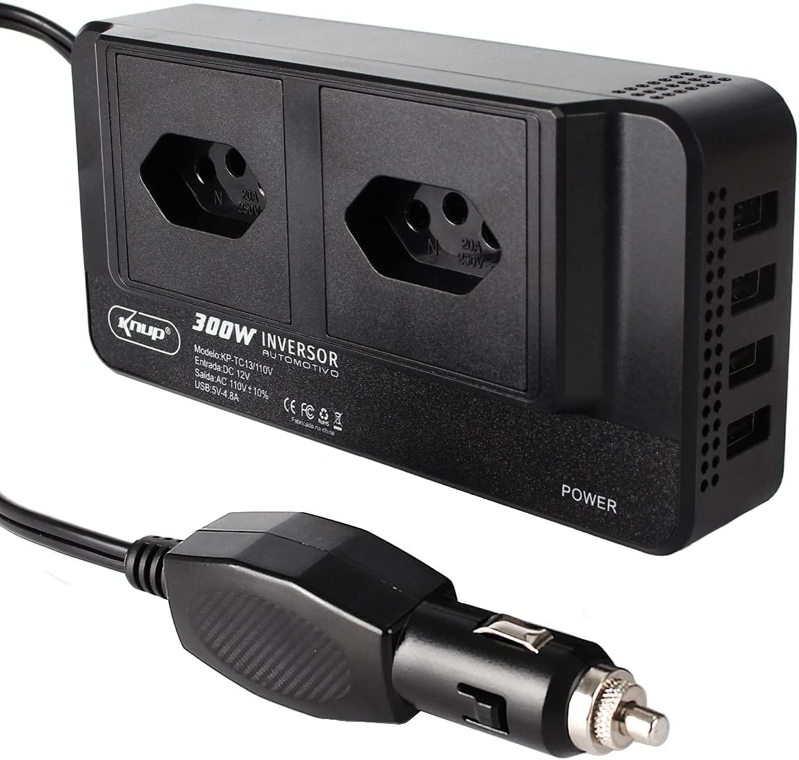 INVERSOR DE 12V PARA 110V 300W COM 4 PORTAS USB 5VDC KNUP KP-TC13