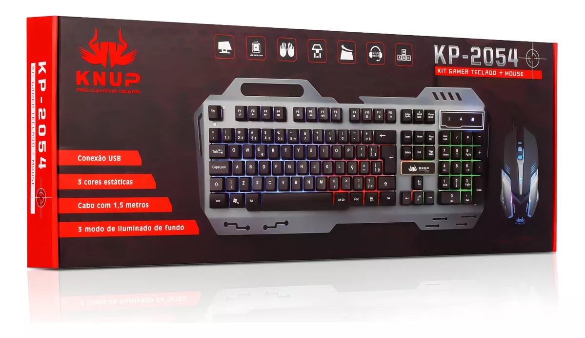 Kit Teclado e Mouse Knup KP 2054 – Gamer Led , Abnt – Iluminado