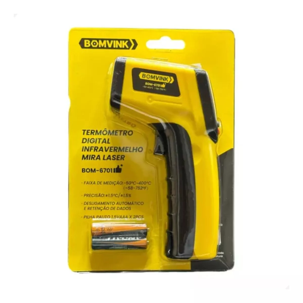 O Termômetro Digital Infravermelho Industrial Bomvink BOM 6701 é perfeito para quem busca um dispositivo de alta performance. Com sua faixa de medição ampla e precisão, ele oferece rapidez e eficiência na medição de temperaturas. Aproveite a oportunidade de adquirir um termômetro de qualidade com excelente custo-benefício.